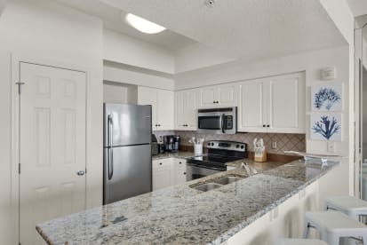 At Majestic Sun you can spend your days indulging in several amenities, including an indoor pool (heated in winter), outdoor pool, two hot tubs, Gulf facing fitness center, & more. With easy beach access, you can simply stroll across the street to the beach & lounge on the sugar white sands or try some fresh seafood at The Whale's Tail Beach Bar & Grill, a local favorite. Majestic Sun is part of the Seascape Beach Resort & is centrally located within minutes of a beautiful 18-hole golf course, Seascape Towne Centre, Destin Commons, Silver Sands Outlet Mall, Grand Boulevard, Parasailing, Waverunner Rentals, Kayak rentals, & more!