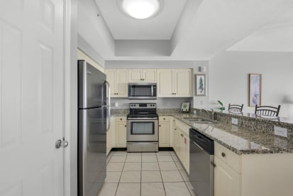 The kitchen is equipped with stainless appliances and quartz countertops, providing a comfortable space for cooking. The private balcony offers beautiful views of the Gulf of Mexico, sandy beaches, and stunning sunsets.