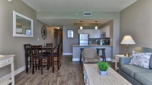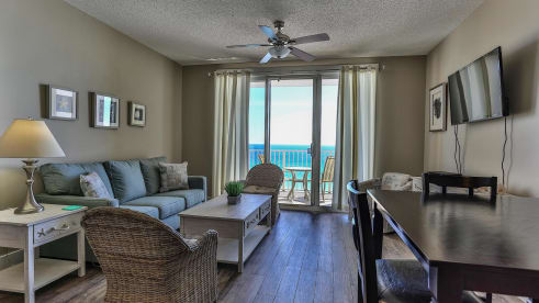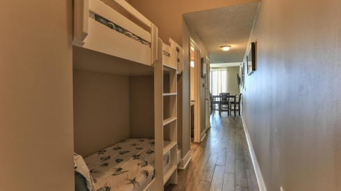 Majestic Sun 1006B vacation rental condo in Miramar Beach, FL at Seascape Resort is located directly across from the beach on the tenth floor and sleeps a total of 6. This condo offers amazing Gulf views from all common areas. Wake up and enjoy your morning coffee while taking in the beautiful sights of Summer from your private balcony or take a stroll on the beach. With this rental, you are provided with two beach chairs and an umbrella in your condo that you can take to the beach, in lieu of spending $40 a day using the local beach service operator. For added convenience, our office is onsite, on the ground floor of the B building in Majestic Sun should you need anything.Upon entering this updated 1 bedroom, 2 bath vacation rental condo in Destin, you will find a comfortable living area where you can admire the beauty of the Gulf. The living area also offers additional sleeping arrangements with a queen size sleeper sofa. The kitchen is fully equipped with stainless steel appliances and everything you would need for a home cooked meal. Enjoy your meals at the dining table and breakfast bar with beautiful views the Emerald Coast has to offer. The dining area seats 4 while the breakfast bar seats an additional 2. The master king suite and private bathroom. This unit also provides a twin over twin bunk nook area, perfect for small children, and a full bathroom off the common areas. A washer and dryer can be found in the unit at your convenience. This condo can be reserved alone or with the adjoining condo, 1007B. This vacation rental sleeps a total of 6.