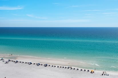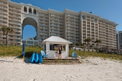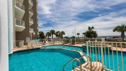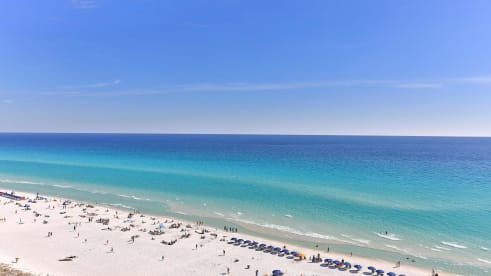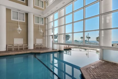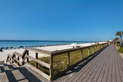 At Majestic Sun you can spend your days indulging in several amenities, including an indoor pool (heated in winter), outdoor pool, two hot tubs, Gulf facing fitness center, & more. With easy beach access, you can simply stroll across the street to the beach & lounge on the sugar white sands or try some fresh seafood at The Whale's Tail Beach Bar & Grill, a local favorite. Majestic Sun is part of the Seascape Beach Resort & is centrally located within minutes of a beautiful 18-hole golf course, Seascape Towne Centre, Destin Commons, Silver Sands Outlet Mall, Grand Boulevard, Parasailing, Waverunner Rentals, Kayak rentals, & more!