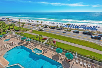 At Majestic Sun you can spend your days indulging in several amenities, including an indoor pool (heated in winter), outdoor pool, two hot tubs, Gulf facing fitness center, & more. With easy beach access, you can simply stroll across the street to the beach & lounge on the sugar white sands or try some fresh seafood at The Whale's Tail Beach Bar & Grill, a local favorite. Majestic Sun is part of the Seascape Beach Resort & is centrally located within minutes of a beautiful 18-hole golf course, Seascape Towne Centre, Destin Commons, Silver Sands Outlet Mall, Grand Boulevard, Parasailing, Waverunner Rentals, Kayak rentals, & more!