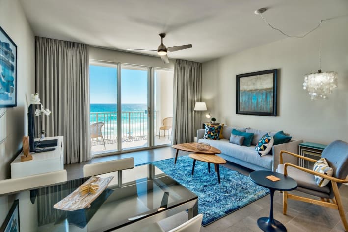 Majestic Sun 409B Gulf view modern condo in Miramar Beach at Seascape Resort. Beautiful views from private balcony & common areas. Amenities include a