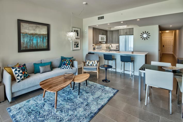 This stunning 4th floor Majestic Sun 409B vacation rental condo at Seascape Resort in Miramar Beach, FL is a one bedroom condo and features a private balcony with breathtaking views of the Gulf of Mexico and a luxurious master bedroom with a king size bed and an adjoined master bathroom. This condo is perfect for a romantic beach getaway as you can unwind on the balcony in the evenings and watch the sunset over the horizon or stroll down and take a relaxing walk along the pristine shores of Destin. With this rental, you are provided with two beach chairs and an umbrella in your condo that you can take to the beach, in lieu of spending $40 a day using the local beach service operator. For added convenience, our office is onsite, on the ground floor of the B building in Majestic Sun should you need anything.The living area offers a 60" HDTV and a brand new queen size sleeper sofa. An additional twin over twin bunk bed in the hallway is perfect for children or additional guests. This beautiful vacation rental condo can accommodate up to 6 guests and offers some of the best views on the beach.