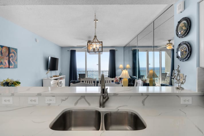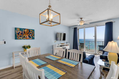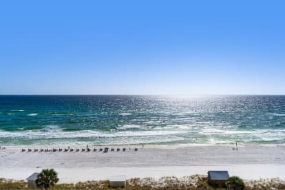 This vacation rental in Miramar Beach, FL, Majestic Sun 703B, is a charming Gulf view beach condo at Seascape Resort located directly across from the beach on the 7th floor and sleeps a total of 8. This condo offers amazing beach views from all common areas and private balcony! Wake up and enjoy your morning coffee while taking in the beautiful sights of the sugar white sands and Summers breeze from your private balcony. With this rental, you are provided with two beach chairs and an umbrella in your condo that you can take to the beach, in lieu of spending $40 a day using the local beach service operator. For added convenience, our office is onsite, on the ground floor of the B building in Majestic Sun should you need anything.Upon entering this 2 bedroom, 2 bath vacation rental condo, you will find a comfortable living area where you can admire the beauty of the beach or watch the HDTV. The new queen sleeper sofa in the living area can comfortably sleep up to 2 guest. The kitchen is fully equipped with everything you would need for a home cooked meal. The dining area and breakfast bar can seat up to 9 comfortably. Enjoy your meals at the dining table with beautiful views of the Gulf that the Emerald Coast has to offer! The master king suite offers beautiful an HDTV and private bath. The second bedroom has 2 full beds, an HDTV and attached bath. This unit conveniently offers a laundry room and sleeps a total of 8.