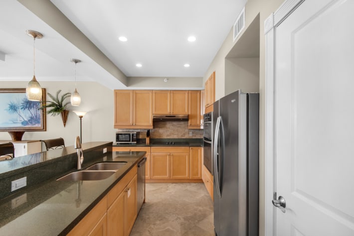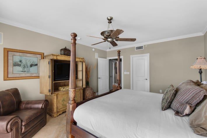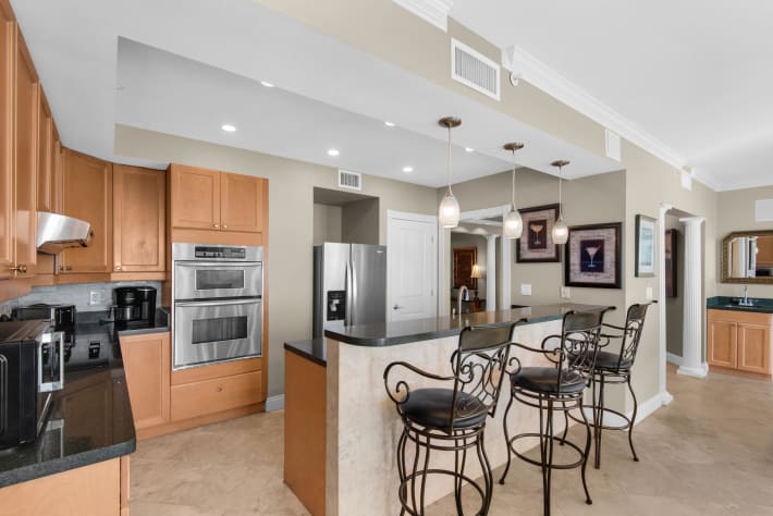 This waterfront getaway offers stunning views of the Gulf and a range of amenities for relaxation. Step onto the balcony from the living area or main bedroom to enjoy the sounds of the waves and the coastal breeze. Inside, sink into comfortable sofas or gather for family movie nights with a smart TV, wine cooler, and mini-bar. The kitchen is equipped with stainless steel appliances and an island for culinary adventures. For leisure, head to the shared pool and hot tub area or the well-equipped gym. End your day with a soak in the jetted tub and watch the sunset from your bedroom.