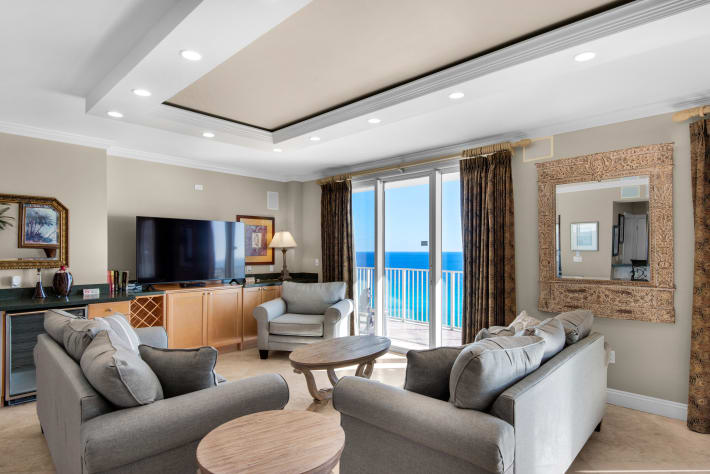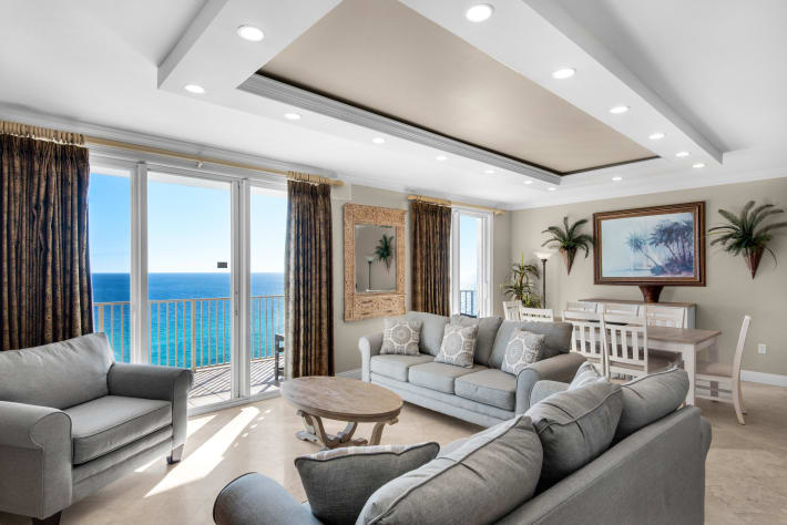 Luxury Penthouse Majestic Sun 1204B Gulf view condo in Miramar Beach at Seascape Resort. Beautiful views from private balcony, master bedroom & common