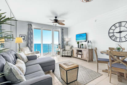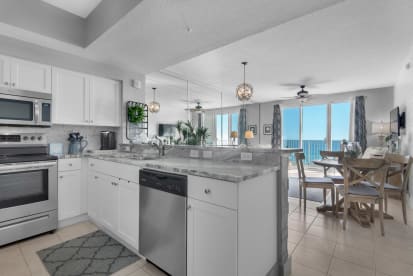 This 6th floor Majestic Sun 612B vacation rental condo in Miramar Beach, FL at Seascape Resort was just recently updated and showcases panoramic views of the beautiful Gulf of Mexico from the private balcony and all common areas! This stunning condo with chic interiors offers 2 spacious bedrooms, 2 full bathrooms, and a large living area with magnificent floor to ceiling windows. With this rental, you are provided with two beach chairs and an umbrella in your condo that you can take to the beach, in lieu of spending $40 a day using the local beach service operator. For added convenience, our office is onsite, on the ground floor of the B building in Majestic Sun should you need anything. This condo is perfect for a family trip to the coast or a beach getaway with friends.Upon entering this beautiful vacation rental condo you'll find a recently updated and fully equipped kitchen featuring stainless steel appliances and a Keurig machine. A sliding glass door off the comfortable living area leads to a private balcony with full views of the beach. The master king suite offers an HDTV and private bathroom. The second bedroom has a king size bed, HDTV, and attached bath. You will also find a twin size rollaway bed that fits nicely in one of the bedrooms for extra guests. This condo conveniently has a washer and dryer in the unit and sleeps up to 7 guests.