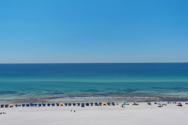 This bright and colorful 7th floor Majestic Sun 704B vacation rental condo in Miramar Beach, FL at Seascape Resort offers some of the best views on the beach. As you enter this magnificent two bedroom deluxe condo, you are greeted with a full kitchen with brand new stainless steel appliances, dining area, and a gorgeous living room that leads to a private balcony with full views of the Gulf of Mexico. The master bedroom also offers a balcony with full views, as a well as a luxurious king size bed, and an adjoined master bath. The second bedroom features two, twin size beds, and the living room contains a sofa sleeper for additional guests. This vacation rental conveniently offers a washer and dryer in the unit and sleeps a total of 6 guest.With this rental, you are provided with two beach chairs and an umbrella in your condo that you can take to the beach, in lieu of spending $40 a day using the local beach service operator. For added convenience, our office is onsite, on the ground floor of the B building in Majestic Sun should you need anything.