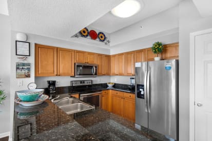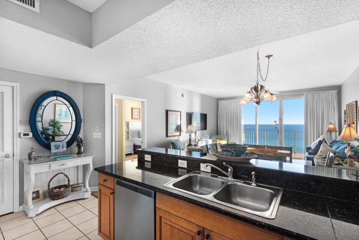 This bright and colorful 7th-floor Majestic Sun 704B vacation rental condo in Miramar Beach, FL at Seascape Resort offers some of the best views on the beach. As you enter this magnificent two-bedroom deluxe condo, you are greeted with a full kitchen with brand new stainless steel appliances, a dining area, and a gorgeous living room that leads to a private balcony with full views of the Gulf of Mexico. The master bedroom also offers a balcony with full views, as well as a luxurious king-size bed, and an adjoined master bath. The second bedroom features two twin-size beds, and the living room contains a sofa sleeper for additional guests. This vacation rental conveniently offers a washer and dryer in the unit and sleeps a total of 6 guests.With this rental, you are provided with two beach chairs and an umbrella in your condo that you can take to the beach, in lieu of spending $40 a day using the local beach service operator. For added convenience, our office is on-site, on the ground floor of the B building in Majestic Sun, should you need anything.