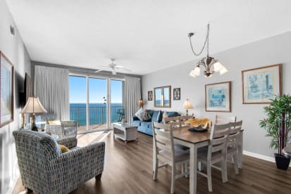 At Majestic Sun, you can spend your days indulging in several amenities, including an indoor pool (heated in winter), outdoor pool, two hot tubs, Gulf Gulf-facing fitness center, & more. With easy beach access, you can simply stroll across the street to the beach & lounge on the sugar white sands or try some fresh seafood at The Whale's Tail Beach Bar & Grill, a local favorite. Majestic Sun is part of the Seascape Beach Resort & is centrally located within minutes of a beautiful 18-hole golf course, Seascape Towne Centre, Destin Commons, Silver Sands Outlet Mall, Grand Boulevard, Parasailing, Waverunner Rentals, Kayak rentals, & more!
