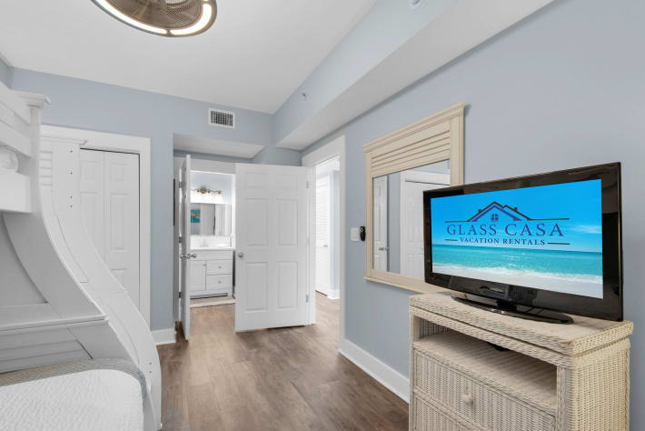 Majestic Sun 614A at Seascape Resort in Miramar Beach, FL is a beautiful newly renovated Gulf view 3 bedroom, 3 bathroom updated beach condo located directly across from the beach on the sixth floor and sleeps a total of 10. This vacation rental condo offers amazing Gulf views from all common areas including the master suite! Wake up and enjoy your morning coffee while taking in the beautiful sights of the sugar white sands and Summers breeze from your private balcony. With this rental, you are provided with two beach chairs and an umbrella in your condo that you can take to the beach, in lieu of spending $40 a day using the local beach service operator. For added convenience, our office is onsite, on the ground floor of the B building in Majestic Sun should you need anything.Upon entering this newly renovated and updated 3 bedroom, 3 bath vacation rental condo, you will find a comfortable living area where you can admire the beauty of the Gulf or watch the HDTV. The living area also offers a queen size sleeper sofa. The kitchen features stainless steel appliances, a Keurig machine, and is fully equipped with everything you would need to prepare a home-cooked meal while the dining area and breakfast bar can seat guests comfortably. Enjoy your meals at the dining table with beautiful views the Emerald Coast has to offer! The master king suite offers beautiful Gulf views with access to the private balcony, an HDTV and private bath. The second bedroom is a king suite with an HDTV and private bathroom. The third is a bunk room with a twin over full bunk bed, plus trundle bed, with an HDTV, and attached bath. This unit is an end unit, therefore, you will not be disturbed by traffic or outside foot noise and conveniently offers a laundry room, This vacation rental sleeps a total of 10.