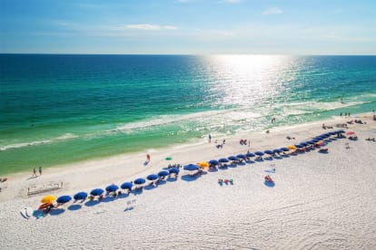 At Majestic Sun you can spend your days indulging in several amenities, including an indoor pool (heated in winter), outdoor pool, two hot tubs, Gulf facing fitness center, & more. With easy beach access, you can simply stroll across the street to the beach & lounge on the sugar white sands or try some fresh seafood at The Whale's Tail Beach Bar & Grill, a local favorite. Majestic Sun is part of the Seascape Beach Resort & is centrally located within minutes of a beautiful 18-hole golf course, Seascape Towne Centre, Destin Commons, Silver Sands Outlet Mall, Grand Boulevard, Parasailing, Waverunner Rentals, Kayak rentals, & more!