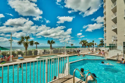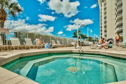 At Majestic Sun you can spend your days indulging in several amenities, including an indoor pool (heated in winter), outdoor pool, two hot tubs, Gulf facing fitness center, & more. With easy beach access, you can simply stroll across the street to the beach & lounge on the sugar white sands or try some fresh seafood at The Whale's Tail Beach Bar & Grill, a local favorite. Majestic Sun is part of the Seascape Beach Resort & is centrally located within minutes of a beautiful 18-hole golf course, Seascape Towne Centre, Destin Commons, Silver Sands Outlet Mall, Grand Boulevard, Parasailing, Waverunner Rentals, Kayak rentals, & more!