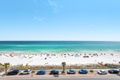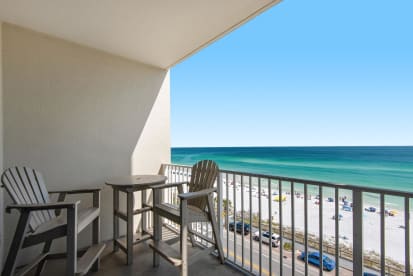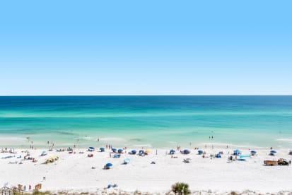 This 6th floor Majestic Sun 605A vacation rental condo in Miramar Beach, FL at Seascape Resort showcases panoramic views of the beautiful Gulf of Mexico. This stunning beach condo offers 2 spacious bedrooms, 2 full bathrooms, and a large living area with magnificent floor to ceiling windows. With this rental, you are provided with two beach chairs and an umbrella in your condo that you can take to the beach, in lieu of spending $40 a day using the local beach service operator. For added convenience, our office is onsite, on the ground floor of the B building in Majestic Sun should you need anything. This condo is perfect for a family trip to the coast or a beach getaway with friends.Upon entering this 2 bedroom, 2 bathroom vacation rental in Destin you'll find a spacious and fully equipped kitchen with everything you would need for a home cooked meal, plenty of counter space and a pantry for storage. Enjoy your meals at the dining table with beautiful views the Emerald Coast has to offer. Along with comfort the living area provides an HDTV, queen size sleeper sofa, views of the Gulf, and a sliding glass door that leads to a private balcony with full views of the beach. Wake up and enjoy your morning coffee while taking in the beautiful sights of the sugar white sands and Summers breeze from your private balcony. The master suite offers a king-sized bed, an HDTV, and private bathroom. The second bedroom has two full beds, an HDTV, and an attached bath. This condo conveniently has a washer and dryer in the unit and sleeps up to 8.