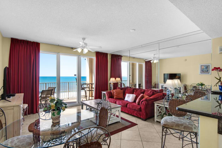 Majestic Sun is renowned for its breathtaking, unobstructed views of the Sugar White Sand beaches along the Gulf of America, and this unit takes full advantage of that serenity. The stunning balcony view seamlessly flows into the condo, creating a peaceful atmosphere that ensures a vacation you’ll cherish for years to come.As you step into this 6th-floor condo, you'll immediately feel a sense of relaxation and joy. The master bedroom is outfitted with a king bed and a full ensuite bath for ultimate comfort. This unit also features the coveted hallway bunk cubbies, providing a private and cozy space for families. With 1 bedroom and 2 full baths, both the master and additional guests will enjoy their own private bathroom — the second located off the main hallway.