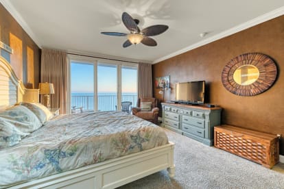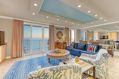 Welcome to the Penthouse of Majestic Sun. This condo has views that bring folks from all over the country and even internationally. Luxuries, comforts, and special touches throughout the condo are sure to delight all guests in your party.The beautiful three bedroom, plus bonus room, three and a half bath unit, sits atop Majestic Sun with stunning 180 degree views of the Gulf of Mexico. Often referred to as the Penthouse unit - you must imagine yourself taking in the sunset from this balcony. With glass windows and doors encompassing the unit - every angle you take in will captivate you. Enjoy the finer luxuries that this top floor deluxe unit can offer you and your family during your vacation getaway!