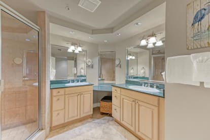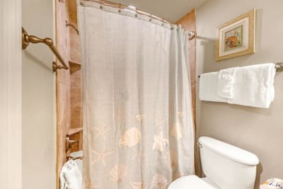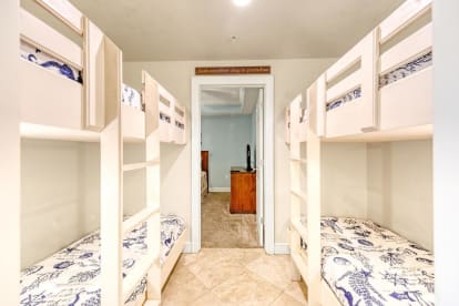 The master bedroom features a king size bed and en suite. The 2nd bedroom features a queen size bed. The third bedroom features two double beds. The bonus bunk room features two bunk sets - or 4 twin size sleeping arrangements. Additionally, there is a queen-size pull-out sleeper sofa available for guest use as well, allowing up to 12 guests at maximum occupancy.