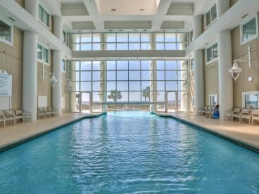 This two-bedroom is sure to please with a magnificent views and a 3-minute walk to the beach, with an indoor / outdoor pool and hot tub!