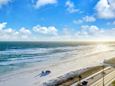 Majestic Sun 910B - This 2-bedroom, 2-bathroom vacation condo is the perfect beach get away! With two King beds and a queen sleeper sofa, this beautiful condo is perfect for couples or families. This unit has flat screen TVs, Washer / Dryer, and a fully equipped, upgraded kitchen with stainless steel appliances. This beachfront property offers access to a private balcony overlooking the indoor / outdoor pool and hot tub, and is a quick 3-minute walk to the beachDiscover Exclusivity with Seascape Resort, Inc.!