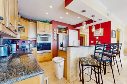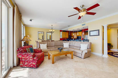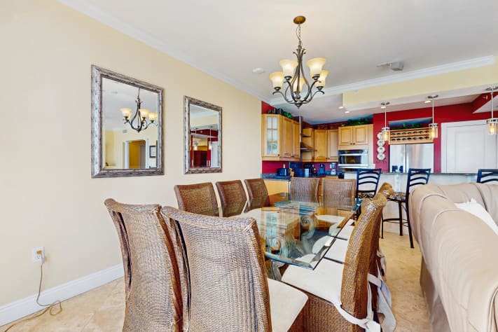 Majestic Sun A1204This incredibly beautiful upscale penthouse unit is both cozy and inviting with phenomenal Gulf views from an expansive private twelfth-floor balcony. The living area features upscale furniture, a cozy settee, three coordinating chairs, a great flat screen TV, a DVD player, and access to your private penthouse balcony where you can see for miles! This unit has been upgraded with travertine flooring in the main living areas. You will also enjoy the fully equipped kitchen upgraded kitchen with cherry cabinets, fine appliances, and everything you need to make a home-cooked meal. There is plenty of dining seating with a fine dining table for eight as well as four bar stools at the breakfast bar. The master bedroom has a lovely king bed, a large flat screen TV, and access to a private full bathroom with a custom tiled shower. The guest bedroom features a great queen bed, a flat-screen TV, a DVD player, and access to the second full bathroom. You will find hall bunks just off of the guest bedroom featuring two sets of twin over twin bunk beds with designer bedding. The unit also includes a CD stereo system, a wine fridge, wireless internet access, and a private washer and dryer. Come and make your next favorite beach dreams come true at Majestic Sun Penthouse, A 1204! You will receive your arrival information via email. For your convenience, we have a concierge desk located at 77 Seascape Drive, Miramar Beach FL, 32250 if you have any further questions.
