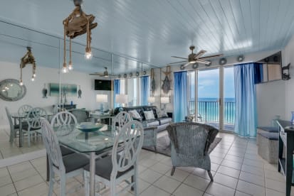 2020 REMODELED CONDO! 2 BED 2 BATHS SLEEPS 8 BEACH, INDOOR & OUTDOOR POOLS!!REMODELED AND UPDATED IN 2020! SLEEP UP TO 8 PEOPLE WHILE OVERLOOKING THE BEACH AND EMERALD GREEN WATER AT THE MAJESTIC SUN COMPLEX WITH AN INDOOR HEATED POOL, LARGE OUTDOOR POOL AND TWO HOT TUBS. EXERCISE FACILITY OVERLOOKS THE GULF OF AMERICA; AN 18 HOLE GOLF COURSE, TENNIS COURTS, FIVE FRESH WATER LAKES, 2000 FT OF DEEDED BEACH ACCESS AND GUARD GATES ON BOTH HWY 98 AND SCENIC GULF DRIVE. THE UNIT IS TILED THROUGHOUT WITH THE EXCEPTION OF THE MASTER BEDROOM AND HAS CROWN MOLDING THROUGHOUT WITH THE EXCEPTION OF THE ENTRY AND HALL. NEW MATTRESS IN MASTER BEDROOM WITH A KING BED! SLEEPER SOFA IN LIVING ROOM MAKES FOR SLEEPING 8 (EIGHT). OPEN FLOOR PLAN WITH WHITE ON WHITE KITCHEN THAT OVERLOOKS THE DINING AND LIVING AREA AND THEN OUT TOWARD THE UNOBSTRUCTED VIEWS OF THE GULF. MIRRORED WALL IN KITCHEN ALLOWS FOR THE REFLECTION OF THE GULF TO COME INDOORS! NICELY DECORATED WITH A BEACH THEME DECOR! NEAT AND CLEAN READY FOR GUESTS WHO WANT TO STAY OVERLOOKING THE BEACH!